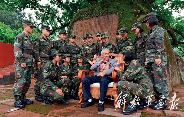 2021年4月20日,火箭軍某部利用駐地紅色資源開展“學(xué)百年黨史、講紅色故事”活動。圖為老紅軍為官兵講述戰(zhàn)斗故事。(攝影/段愛珍)