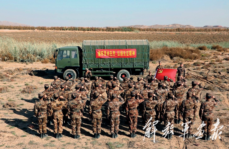 2021年10月中旬,戰(zhàn)略支援部隊某訓(xùn)練隊在執(zhí)行任務(wù)間隙開展“緬懷革命先烈、 弘揚長征精神”主題黨日活動。(攝影/田文博)