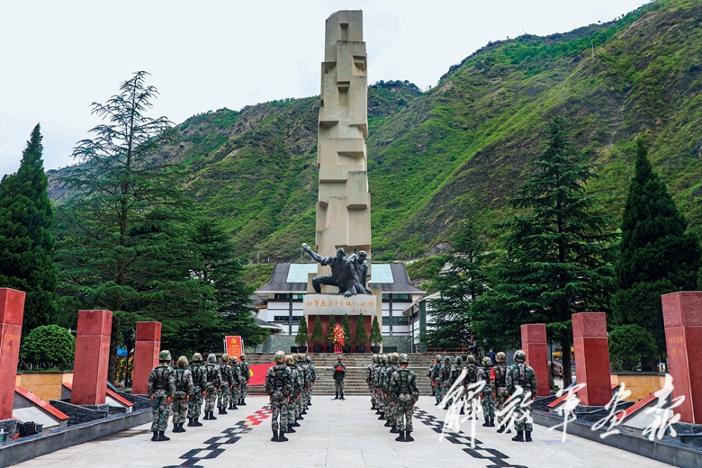 2021年5月19日,陸軍第75集團軍某旅官兵在駐訓(xùn)機動途中參觀紅軍飛奪瀘定橋紀(jì)念碑,感悟偉大長征精神。(攝影/李文宗)