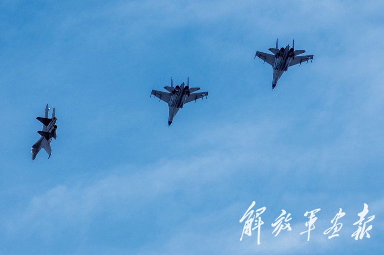 戰(zhàn)機(jī)飛赴任務(wù)空域,開展訓(xùn)練。