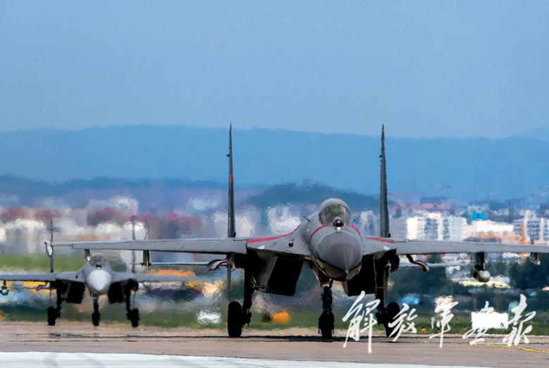 戰(zhàn)機(jī)列隊滑向起飛線。