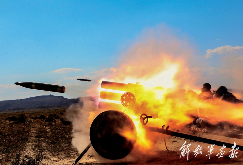 此時,“敵軍”依托障礙物和堅(jiān)固工事負(fù)隅頑抗。指揮員根據(jù)戰(zhàn)場態(tài)勢,靈活實(shí)施作戰(zhàn)指揮。防化分隊(duì)利用某型集束火箭展開煙幕迷盲、工兵分隊(duì)攜帶單兵火箭爆破器為戰(zhàn)車群開辟通路、火力分隊(duì)依托迫擊炮實(shí)施精準(zhǔn)拔點(diǎn)……在各要素密切協(xié)同下,部隊(duì)成功突破前沿陣地。