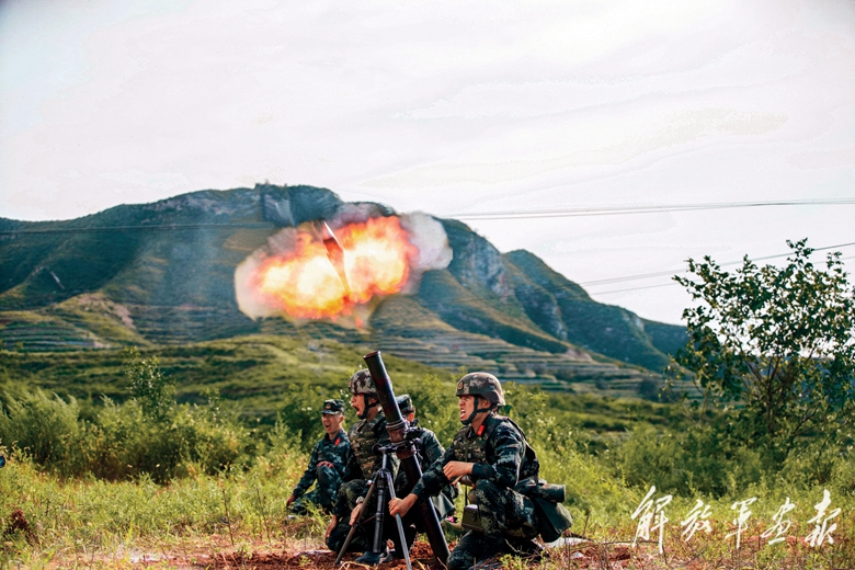 “‘颶風(fēng)’,對(duì)‘?dāng)场繕?biāo)進(jìn)行火力壓制!”指揮員一聲令下,火力分隊(duì)官兵背負(fù)迫擊炮裝具分頭開(kāi)進(jìn),占領(lǐng)發(fā)射陣地。一發(fā)發(fā)炮彈呼嘯而出,成功覆蓋“敵”陣地,壓制并摧毀了“敵”前沿火力。