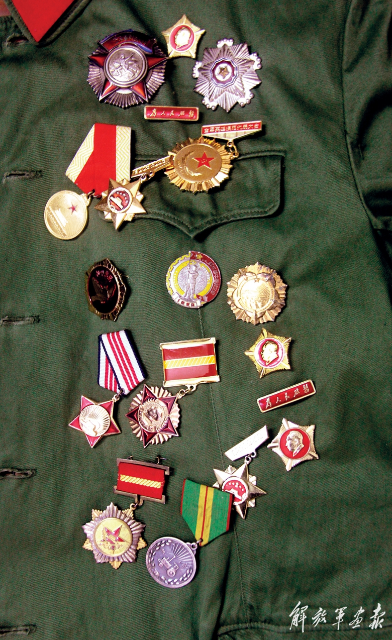 碼放齊整的被褥、幾件軍綠色的衣服、滿柜子的書籍……這些細節(jié)都在提醒人們,這里的主人是一位老兵。多少年來,李延年屋子的陳設幾乎沒有什么改變。唯一顯著的變化,是墻壁上懸掛了一幅他被授予“共和國勛章”時的照片——