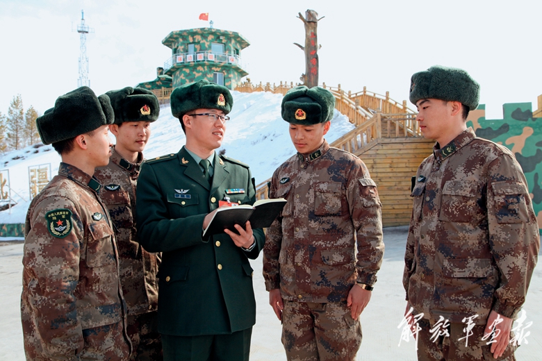 時任陸軍某邊防旅營長的寶林為三角山哨所官兵宣講黨的創(chuàng)新理論。
