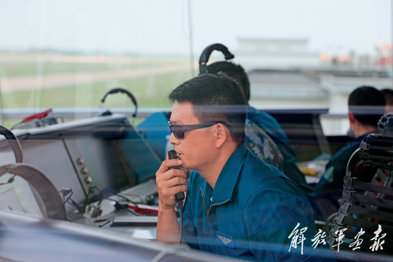 李超在塔臺(tái)指揮飛行訓(xùn)練。