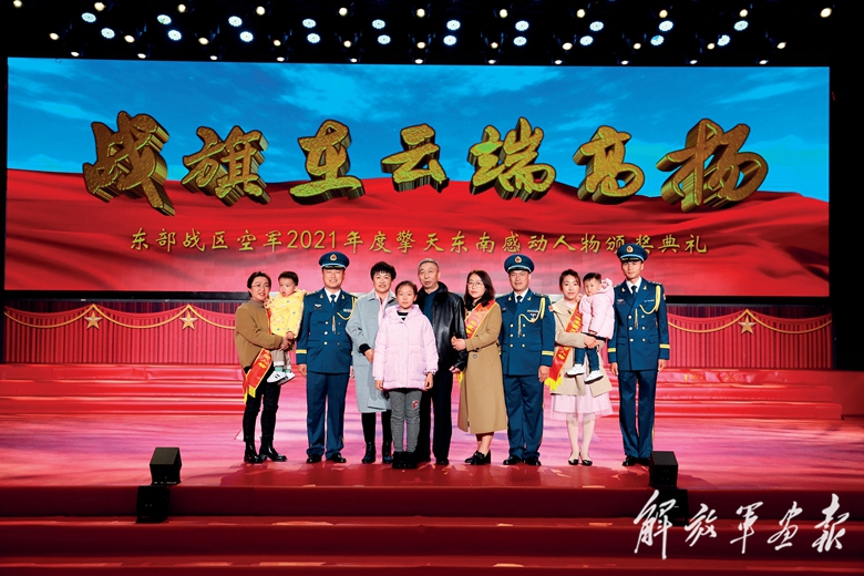1月13日,東部戰(zhàn)區(qū)空軍隆重舉行第九屆“擎天東南感動人物”頒獎典禮,領(lǐng)獎臺上的3位軍嫂格外引人注目?!敖裼性遗響鸭覈?,一門三軍嫂,大愛暖軍營。”聽到這段頒獎詞后,臺下頓時掌聲雷動。