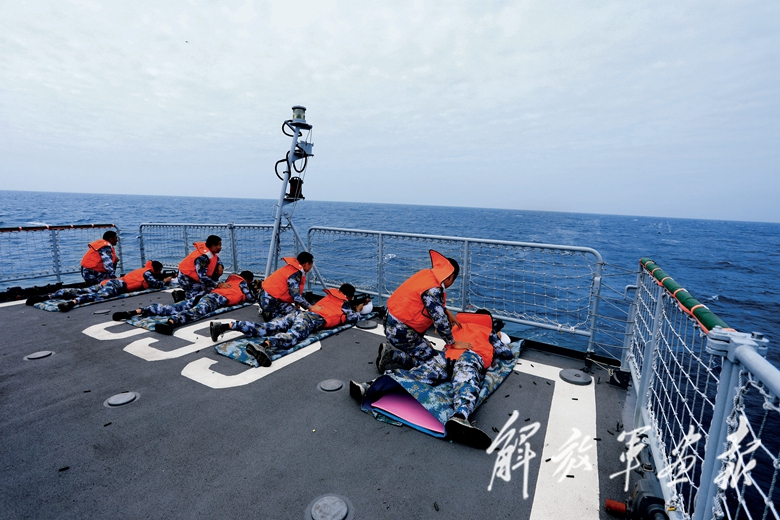官兵進(jìn)行海上輕武器射擊訓(xùn)練。