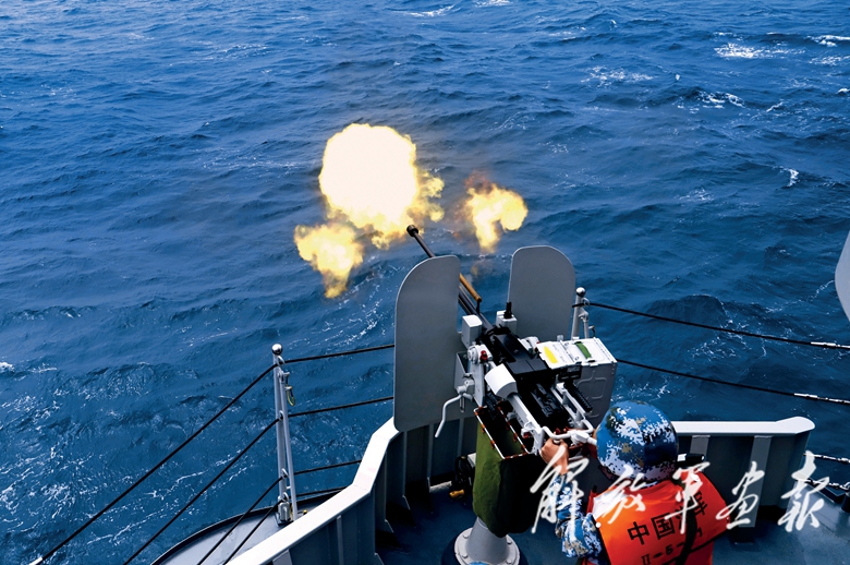 綿陽艦重機(jī)槍射擊瞬間。