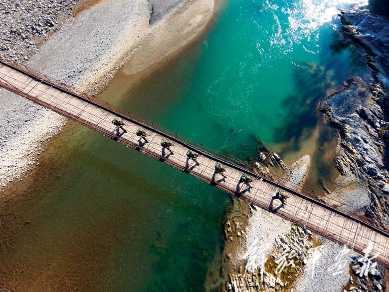 中隊官兵通過鐵索橋,開展戰(zhàn)術訓練。