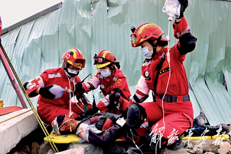 隨著演習(xí)的展開,各路應(yīng)急救援力量相繼投入救援,當(dāng)?shù)貞?yīng)急力量率先突入,進(jìn)行廢墟搜救、傷員救治轉(zhuǎn)運(yùn)、損毀公路橋梁搶修等任務(wù)。