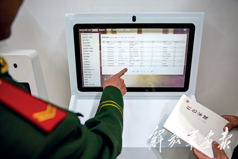 “小愛、小愛,請問梁曉聲先生的《人世間》在哪里?”“《人世間》存在第三書柜第二排第5冊,祝您閱讀愉快?!蓖瑫r,在讀書交互設(shè)備“伴讀機”上,小說《人世間》的鏈接迅速彈出。這是武警甘肅總隊酒泉支隊?wèi)?zhàn)士馮鞏和圖書室智能機器人小愛之間的對話。