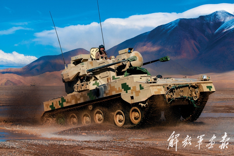 “自行火炮分隊立即向1號預備陣地轉(zhuǎn)移……”接到指令后,自行火炮分隊當即收炮快速機動。途中,“敵機”突然超低空來襲,官兵迅速就近隱蔽偽裝,隨即開火攔截……