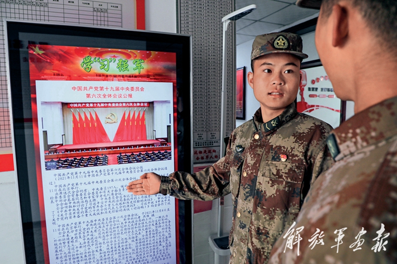 連隊(duì)指導(dǎo)員喬文澤說:“習(xí)主席視察連隊(duì)時(shí),看到官兵運(yùn)用現(xiàn)代信息手段創(chuàng)新學(xué)習(xí)方法,勉勵(lì)大家發(fā)揚(yáng)優(yōu)良傳統(tǒng),緊貼時(shí)代、緊貼實(shí)踐、緊貼官兵,做好用黨的創(chuàng)新理論武裝頭腦工作……連隊(duì)牢記囑托,不斷探索創(chuàng)新學(xué)習(xí)方式?!?/p>