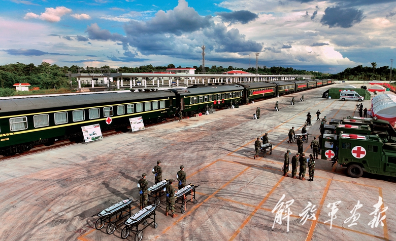 7月19日至7月29日,我軍一支由149人組成的衛(wèi)勤分隊(duì),搭乘衛(wèi)生列車赴老撾萬象和蓬洪,與老撾人民軍共同開展“和平列車-2022”人道主義醫(yī)學(xué)救援聯(lián)合演習(xí)暨醫(yī)療服務(wù)活動(dòng)。這是我軍衛(wèi)生列車首次出境參演、首次跨境投送、首次離境實(shí)保,也是我軍“和平列車”醫(yī)療隊(duì)第4次赴老撾。