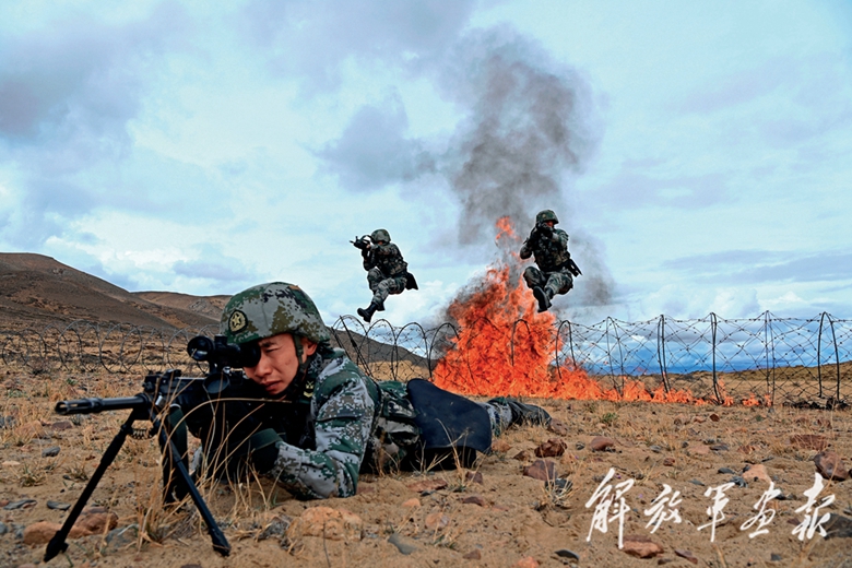 經(jīng)近4小時(shí)的遠(yuǎn)程機(jī)動(dòng),官兵抵達(dá)預(yù)定地域,指揮員根據(jù)現(xiàn)場(chǎng)態(tài)勢(shì),進(jìn)一步明確搶占要點(diǎn)任務(wù)。“前沿攻擊隊(duì),沖擊前進(jìn)!”火力組聞令對(duì)“敵”陣地實(shí)施火力壓制,尖兵分隊(duì)跨越障礙物,采取右翼突破、左翼卷?yè)?、穿插迂回的?zhàn)術(shù),對(duì)高地發(fā)起勇猛沖鋒,于預(yù)定時(shí)間順利奪取要點(diǎn)。