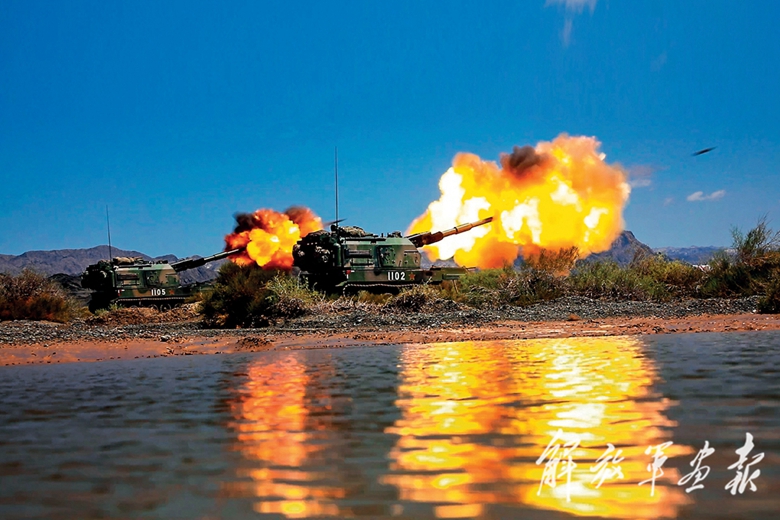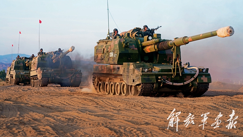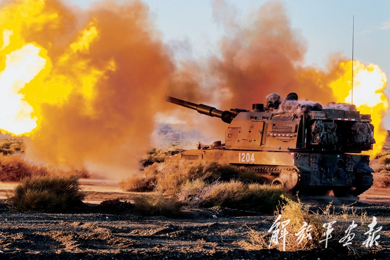 “發(fā)現(xiàn)目標(biāo)!”計(jì)算出射擊諸元后,火炮一鍵瞄準(zhǔn)、彈藥自動(dòng)裝填,快速完成射擊準(zhǔn)備。隨著指揮員下達(dá)射擊指令,炮彈瞬間出膛,精準(zhǔn)摧毀目標(biāo)。實(shí)施首輪打擊后,陣地位置暴露,火炮迅速撤離。