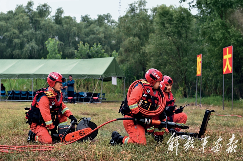 演練以東西湖區(qū)遭遇罕見持續(xù)強(qiáng)降雨,區(qū)內(nèi)長江、漢江段出現(xiàn)超汛限水位,城市內(nèi)澇嚴(yán)重,造成多處重大險(xiǎn)情為背景,來自區(qū)人武部、應(yīng)急局、水務(wù)和湖泊局、公安分局、服投集團(tuán)等軍地21個(gè)單位的300余名參訓(xùn)人員在漢江原年豐碼頭完成集結(jié),圍繞空中偵察、通信保障、轉(zhuǎn)移人員物資、搜救落水人員、封堵決口、分流泄洪等課目展開演練,工業(yè)級無人機(jī)升空偵察、生命探測儀快速探測、移動(dòng)智能照明平臺(tái)應(yīng)急供電、智能機(jī)器人水上救援……一批高科技應(yīng)急救援裝備進(jìn)入戰(zhàn)位。演練首次啟用應(yīng)急儲(chǔ)備頻率,僅用5分鐘便恢復(fù)通信,第一時(shí)間向現(xiàn)場指揮部提供精準(zhǔn)災(zāi)情信息,為應(yīng)急救援指揮調(diào)度提供可靠穩(wěn)定的通信保障。