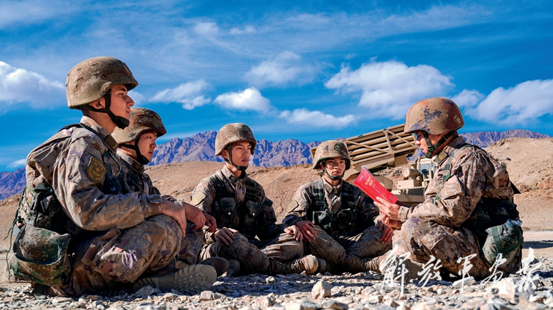 “戰(zhàn)爭年代,面對一場場敵我力量懸殊的戰(zhàn)斗,正是靠著黨的堅強(qiáng)領(lǐng)導(dǎo),我們才取得一個又一個勝利。如今,我們更要賡續(xù)紅色血脈、矢志強(qiáng)軍打贏……”前不久,海拔4500多米的高原某地硝煙彌漫,陸軍某團(tuán)“戰(zhàn)斗英雄連”官兵在一場實(shí)兵對抗中獲勝。隨后,該連指導(dǎo)員劉凡帶領(lǐng)官兵重溫先輩戰(zhàn)斗故事,引導(dǎo)大家深刻領(lǐng)悟“兩個確立”的決定性意義,進(jìn)一步強(qiáng)化忠誠維護(hù)核心、矢志奮斗強(qiáng)軍的信心決心。