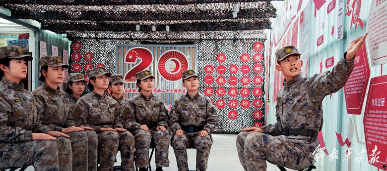 訓(xùn)練間隙,官兵抓住點(diǎn)滴時間學(xué)習(xí)黨史知識。