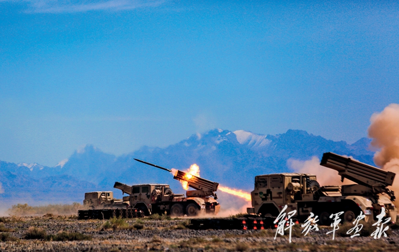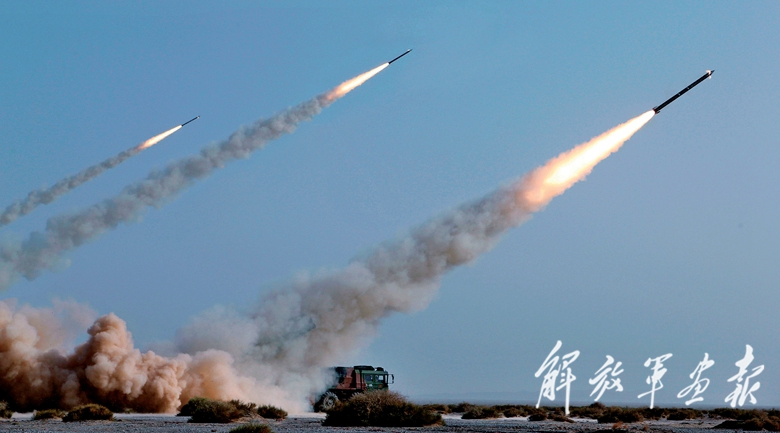 某新型火箭炮進(jìn)行實(shí)彈射擊。