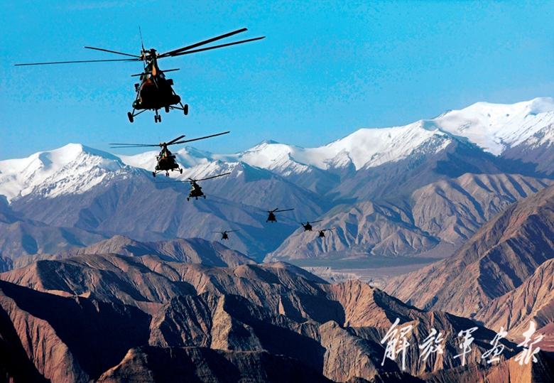 2014年,陸軍航空兵某部組織大機群編隊飛越雪域高原。(攝影/許必成)