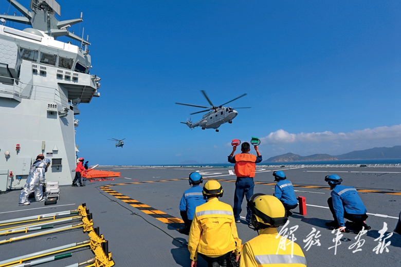 檢驗成果那天,多批多架次艦載直升機從海南艦甲板上騰空而起,標(biāo)志著海南艦初步形成垂直投送能力。