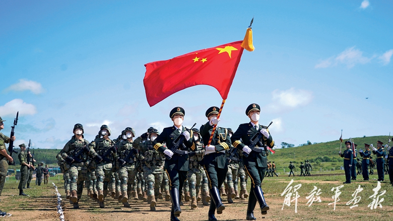 開幕式現(xiàn)場(chǎng),中方參演官兵士氣高昂走過主席臺(tái)。