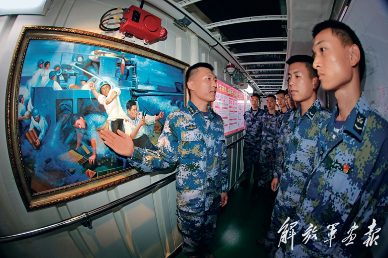 “2018年4月12日,曲靖艦作為近海防御群一員,光榮地接受習(xí)主席檢閱……”近日,在南部戰(zhàn)區(qū)海軍某護(hù)衛(wèi)艦支隊(duì)組織的以“我和戰(zhàn)艦共成長(zhǎng) ”為主題的教育活動(dòng)中,曲靖艦副艦長(zhǎng)劉日升上臺(tái)講述了自己參加南海閱兵的難忘經(jīng)歷;瀘州艦輪機(jī)兵祝正南則分享了自己大學(xué)畢業(yè)后攜筆從戎服役4年間的真情實(shí)感。緊接著,更多官兵依次走上講臺(tái),結(jié)合艦艇歷史航跡和個(gè)人成長(zhǎng)進(jìn)步等話題,闡述踐行強(qiáng)軍目標(biāo)的決心意志。