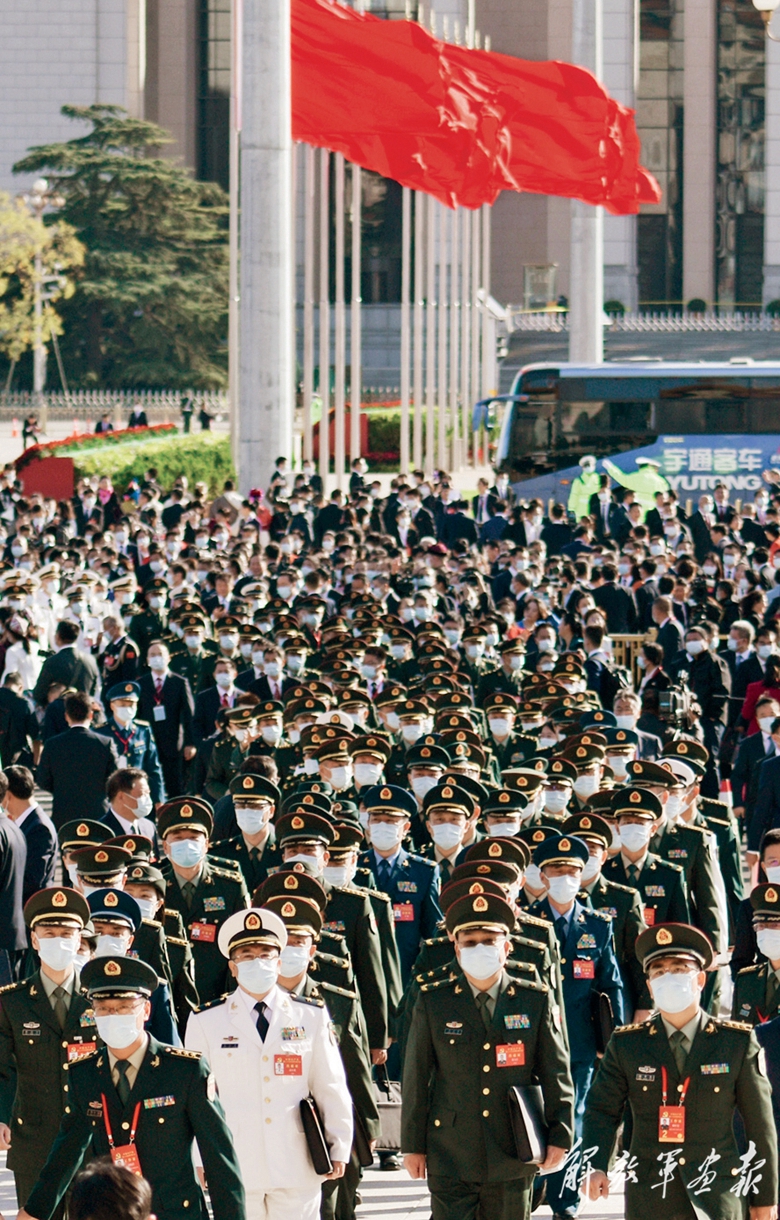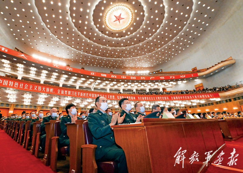 黨的二十大是在全黨全國各族人民邁上全面建設(shè)社會主義現(xiàn)代化國家新征程、向第二個百年奮斗目標(biāo)進(jìn)軍的關(guān)鍵時刻召開的一次十分重要的大會。解放軍和武警部隊代表肩負(fù)神圣使命,以飽滿的政治熱情和高度負(fù)責(zé)的精神,不負(fù)歷史重托,認(rèn)真履行職責(zé),圓滿完成大會賦予的各項任務(wù)。