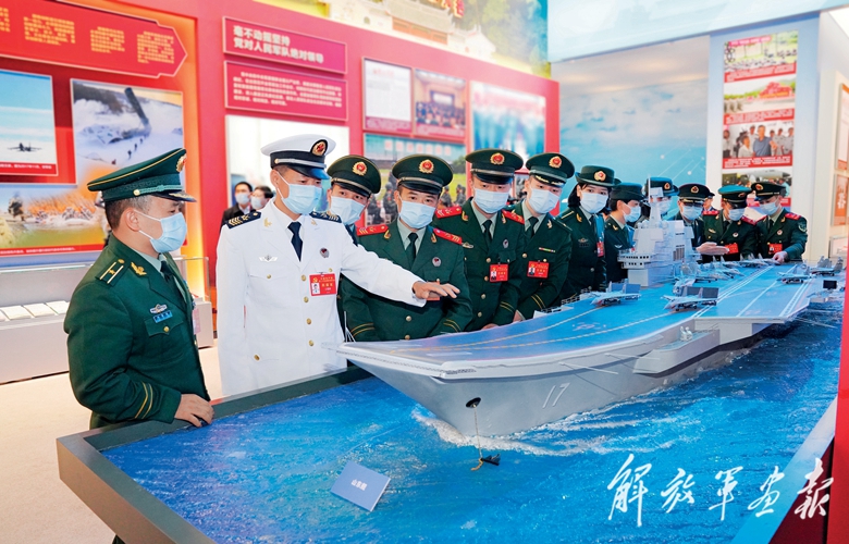 10月17日晚,出席中國共產(chǎn)黨第二十次全國代表大會的解放軍和武警部隊代表團(tuán)代表來到北京展覽館,參觀“奮進(jìn)新時代”主題成就展。 (攝影/記者 范顯海)