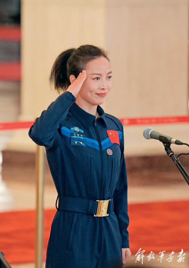 開幕會前,王亞平代表在“黨代表通道”接受采訪。(攝影/記者 穆瑞林)