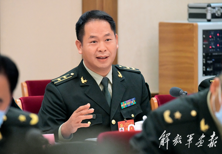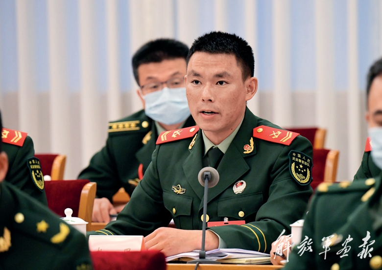 10月17日,來自基層的戰(zhàn)士代表在分組討論會上發(fā)言。(攝影/記者 范顯海)