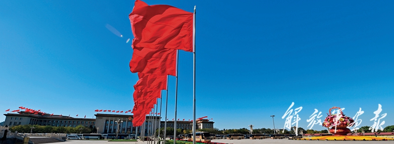 10月22日,中國共產(chǎn)黨第二十次全國代表大會勝利閉幕。天安門廣場紅旗飄揚(yáng)、花團(tuán)錦簇,洋溢著喜慶氣氛。(攝影/記者 穆瑞林)