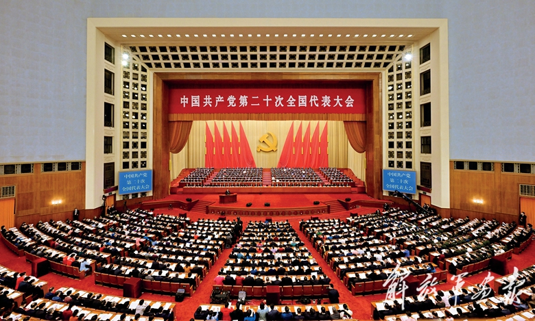 10月22日,中國共產(chǎn)黨第二十次全國代表大會在北京人民大會堂勝利閉幕。圖為大會現(xiàn)場。(攝影/新華社記者 丁 林)