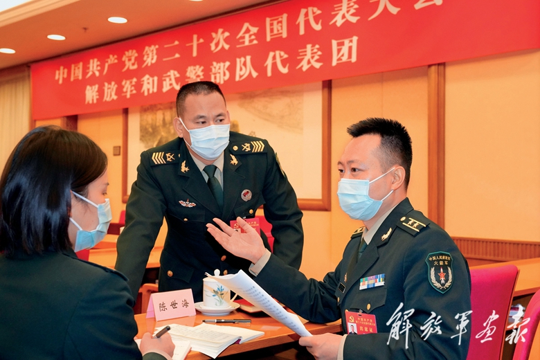 10月17日,解放軍和武警部隊代表團(tuán)分組討論黨的二十大報告。(攝影/記者 范顯海)