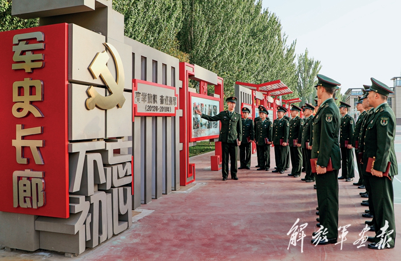 戰(zhàn)略支援部隊(duì)某部組織官兵參觀軍史長(zhǎng)廊,感悟強(qiáng)軍這10年發(fā)展變化。(攝影/譚勝鋒)