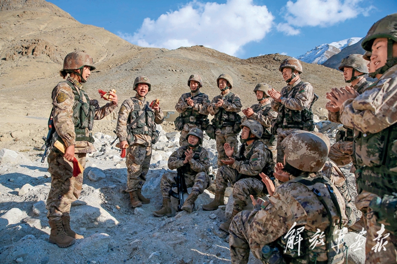 武警青海總隊(duì)某支隊(duì)官兵舉辦“踔厲奮發(fā)、勇毅前行”強(qiáng)軍故事會(huì),激發(fā)官兵學(xué)習(xí)宣傳貫徹黨的二十大精神的政治熱情。(攝影/羅元?jiǎng)P)