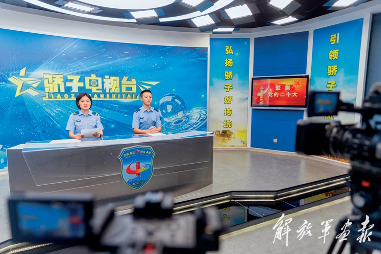 東部戰(zhàn)區(qū)空軍地導(dǎo)某旅利用軍營(yíng)電視臺(tái)等載體學(xué)習(xí)宣傳黨的二十大精神,把官兵力量凝聚到黨的二十大確定的各項(xiàng)任務(wù)上來(lái)。(攝影/林 杰)