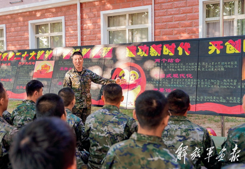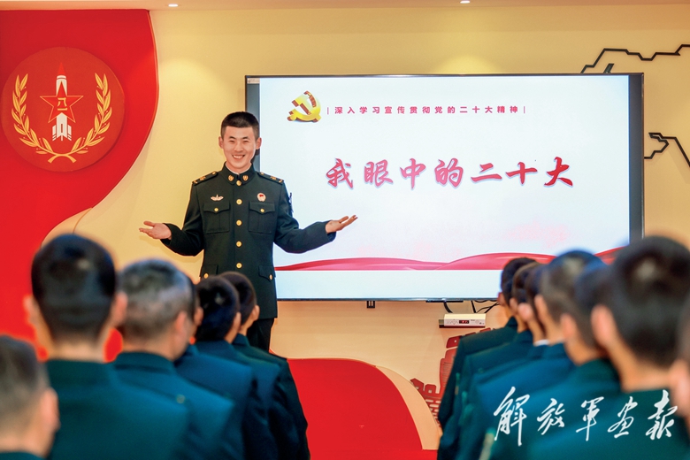 陸軍第80集團(tuán)軍某旅組織理論骨干開展微課教學(xué),帶領(lǐng)官兵學(xué)習(xí)領(lǐng)會(huì)黨的二十大精神。(攝影/張佳琦)