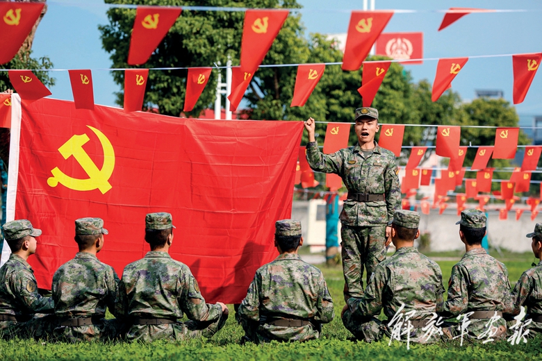 陸軍某旅組織官兵向黨旗宣誓,堅(jiān)定聽黨指揮、奮斗強(qiáng)軍信念。(攝影/李彥文)