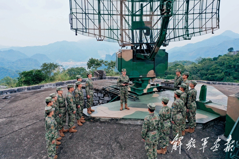 黨的二十大代表、空軍雷達(dá)某旅“鋼鐵雷達(dá)連”指導(dǎo)員聶靈杰(中)返回連隊(duì)后,及時(shí)為官兵傳達(dá)大會(huì)精神。(攝影/陳法朗)