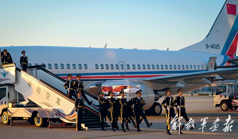 12月1日,江澤民同志的遺體從上海由專機(jī)敬移到達(dá)北京。 (攝影/新華社記者 李學(xué)仁)