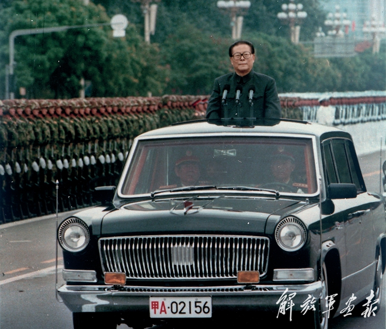 1999年10月1日,中華人民共和國(guó)成立五十周年盛大慶典在北京天安門廣場(chǎng)舉行。江澤民同志檢閱由人民解放軍陸??杖姾腿嗣裎溲b警察部隊(duì)、民兵預(yù)備役部隊(duì)組成的地面方隊(duì)。