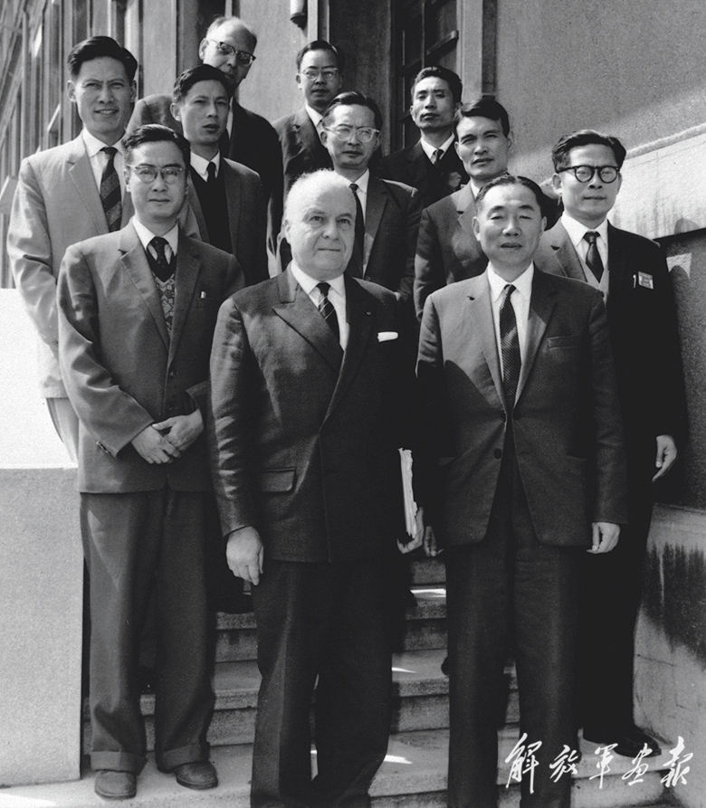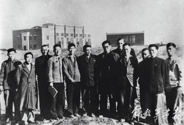 1956年,江澤民同志(左七)在長(zhǎng)春第一汽車制造廠同援建一汽的蘇聯(lián)專家等合影。