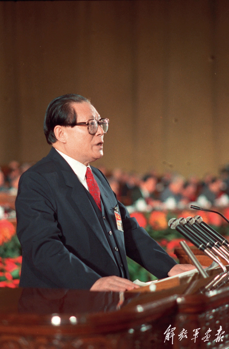 1997年9月12日,中國(guó)共產(chǎn)黨第十五次全國(guó)代表大會(huì)在北京人民大會(huì)堂開幕。這是江澤民同志代表第十四屆中央委員會(huì)作報(bào)告。