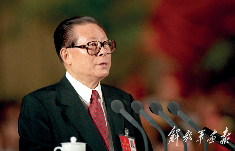 1997年9月,在中國(guó)共產(chǎn)黨第十五次全國(guó)代表大會(huì)上,江澤民作題為《高舉鄧小平理論偉大旗幟,把建設(shè)有中國(guó)特色社會(huì)主義事業(yè)全面推向二十一世紀(jì)》的報(bào)告,著重闡述鄧小平理論的歷史地位和指導(dǎo)意義,提出黨在社會(huì)主義初級(jí)階段的基本綱領(lǐng),明確公有制為主體、多種所有制經(jīng)濟(jì)共同發(fā)展是我國(guó)社會(huì)主義初級(jí)階段的一項(xiàng)基本經(jīng)濟(jì)制度,強(qiáng)調(diào)依法治國(guó)、建設(shè)社會(huì)主義法治國(guó)家,明確我國(guó)改革開放和現(xiàn)代化建設(shè)跨世紀(jì)發(fā)展的宏偉目標(biāo)。在中共十五屆一中全會(huì)上,江澤民當(dāng)選為中共中央政治局常委、中央委員會(huì)總書記,全會(huì)決定江澤民為中共中央軍事委員會(huì)主席。1998年3月,在九屆全國(guó)人大一次會(huì)議上,江澤民當(dāng)選為中華人民共和國(guó)主席和中華人民共和國(guó)中央軍事委員會(huì)主席。
