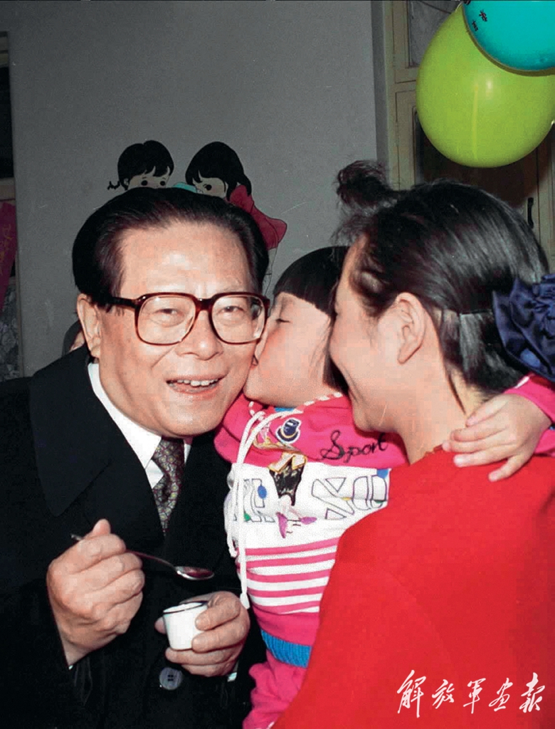 1993年12月5日,江澤民同志在北京為一位幼兒園兒童喂服脊髓灰質(zhì)炎疫苗后,小朋友親吻江爺爺。