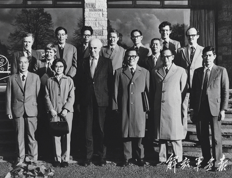 1980年10月底,江澤民同志(前排右三)在愛爾蘭香農(nóng)開發(fā)區(qū)考察時(shí)同開發(fā)區(qū)負(fù)責(zé)人等合影。