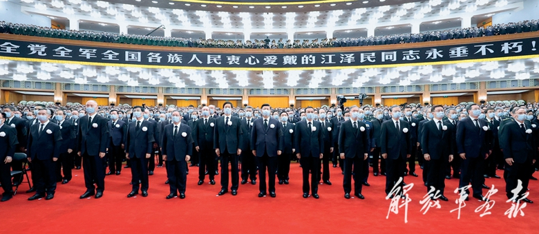 12月6日,中共中央、全國人大常委會、國務(wù)院、全國政協(xié)、中央軍委在北京人民大會堂隆重舉行江澤民同志追悼大會。習(xí)近平、李克強(qiáng)、栗戰(zhàn)書、汪洋、李強(qiáng)、趙樂際、王滬寧、韓正、蔡奇、丁薛祥、李希、王岐山等參加大會。(攝影/新華社記者 鞠 鵬)